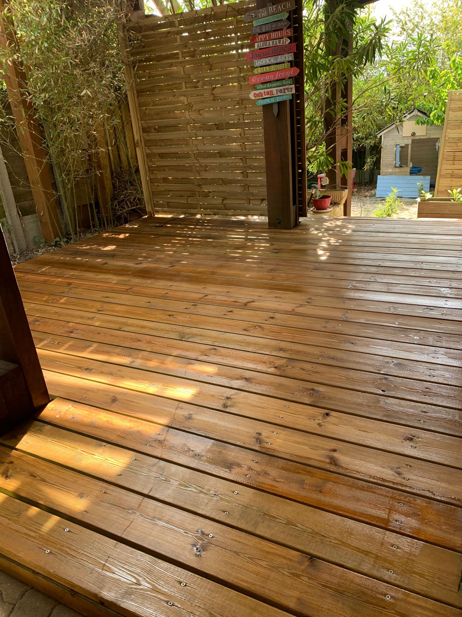 Dans cet esprit commun, après nettoyage, nous proposons les meilleurs traitements avec une gamme uniquement de produits bio et éco-responsables, pour nourrir et protéger dans le temps vos extérieurs bois rénovés.