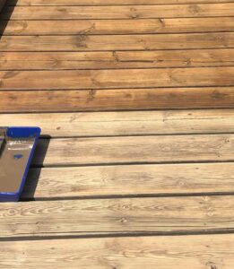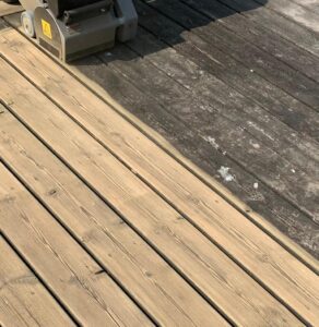 il s’agit d’un nettoyage, décrassage, dégrisage par brossage à sec de votre terrasse pour un rendu de pose initiale sans protection ni traitement supplémentaire.